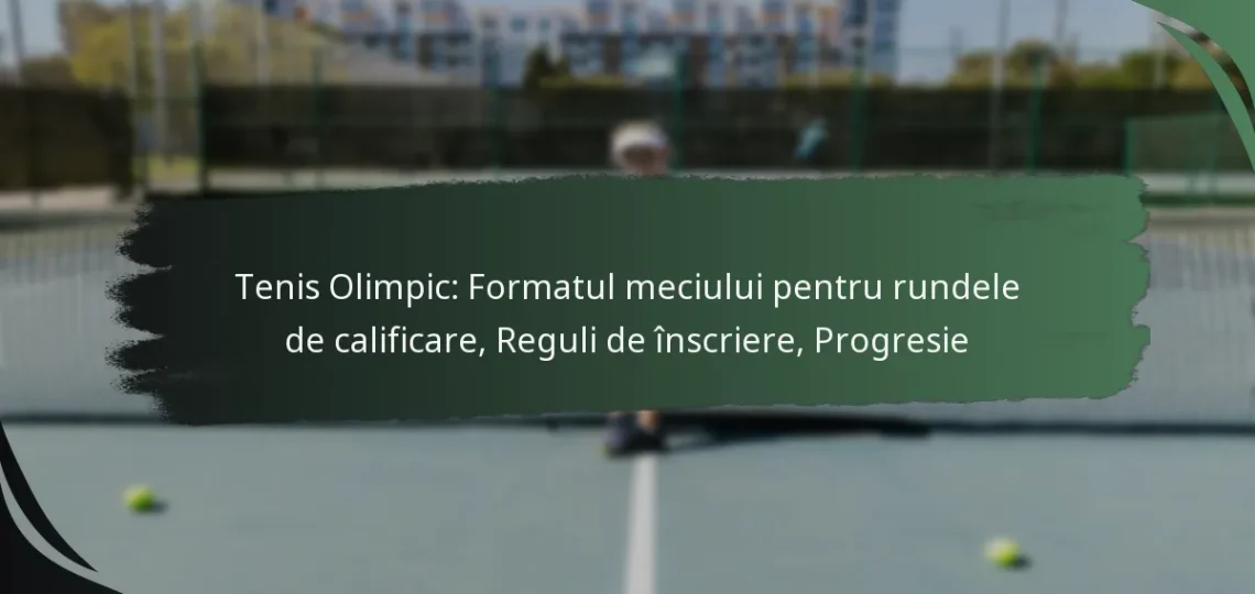 Tennisul olimpic are un format de meci pentru rundele de calificare care determină care jucători avansează la evenimentul principal, cu variații în funcție de numărul de participanți și reglementările ITF. Regulile de participare impun jucătorilor să îndeplinească criterii specifice de eligibilitate, inclusiv clasamentul și reprezentarea națională, respectând în același timp termenele limită pentru aplicații. Progresia prin turneu urmează un sistem structurat de tablou, începând cu rundele de calificare și conducând la etapele eliminatorii înainte de finale.