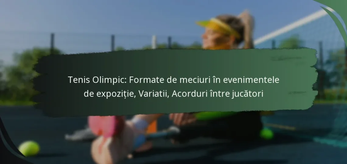 Evenimentele de tenis olimpic de expoziție prezintă o varietate de formate de meciuri concepute pentru a spori implicarea spectatorilor și a evidenția abilitățile jucătorilor. Aceste formate, care includ cele mai bune din trei seturi și dublu mixt, prioritizează divertismentul în detrimentul competiției stricte, permițând reguli flexibile și structuri unice. În plus, acordurile între jucători joacă un rol crucial în aceste evenimente, influențând participarea prin obligații contractuale și aranjamente de sponsorizare.