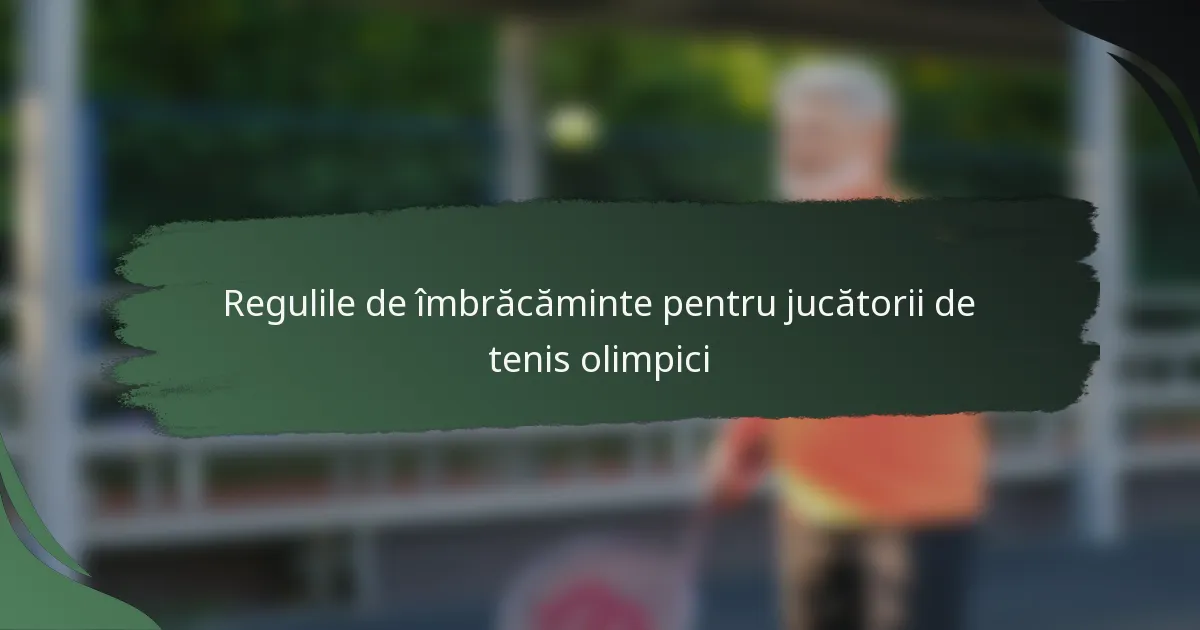 Jucătorii de tenis olimpici trebuie să respecte reguli specifice de îmbrăcăminte stabilite de Federația Internațională de Tenis (ITF) pentru a asigura uniformitate și profesionalism pe teren. Aceste reglementări acoperă culorile uniformelor, plasarea logo-urilor, restricțiile de sponsorizare și articolele interzise, cu verificări ale conformității efectuate în timpul competițiilor.