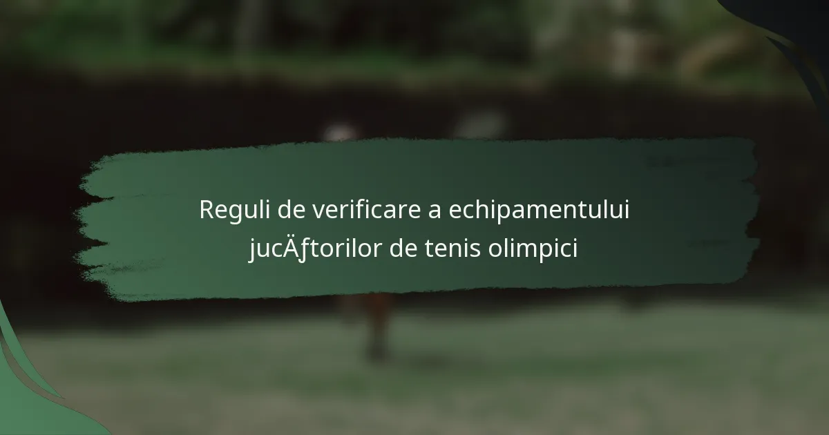 Regulile de verificare a echipamentului jucătorilor de tenis olimpici asigură că tot echipamentul utilizat de sportivi respectă standardele stabilite. Aceste reglementări sunt esențiale pentru menținerea unei competiții corecte și a siguranței sportivilor în timpul Jocurilor.